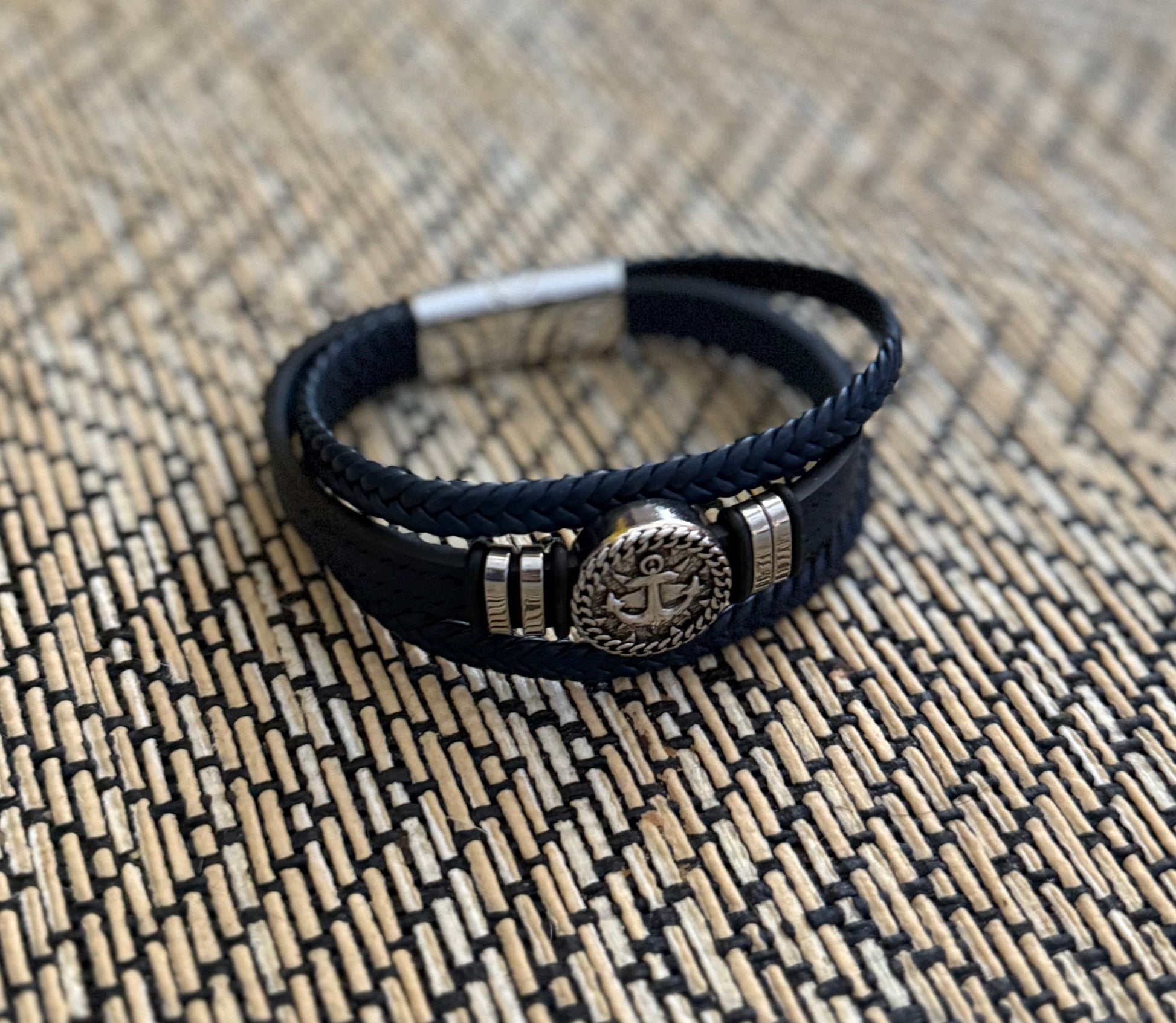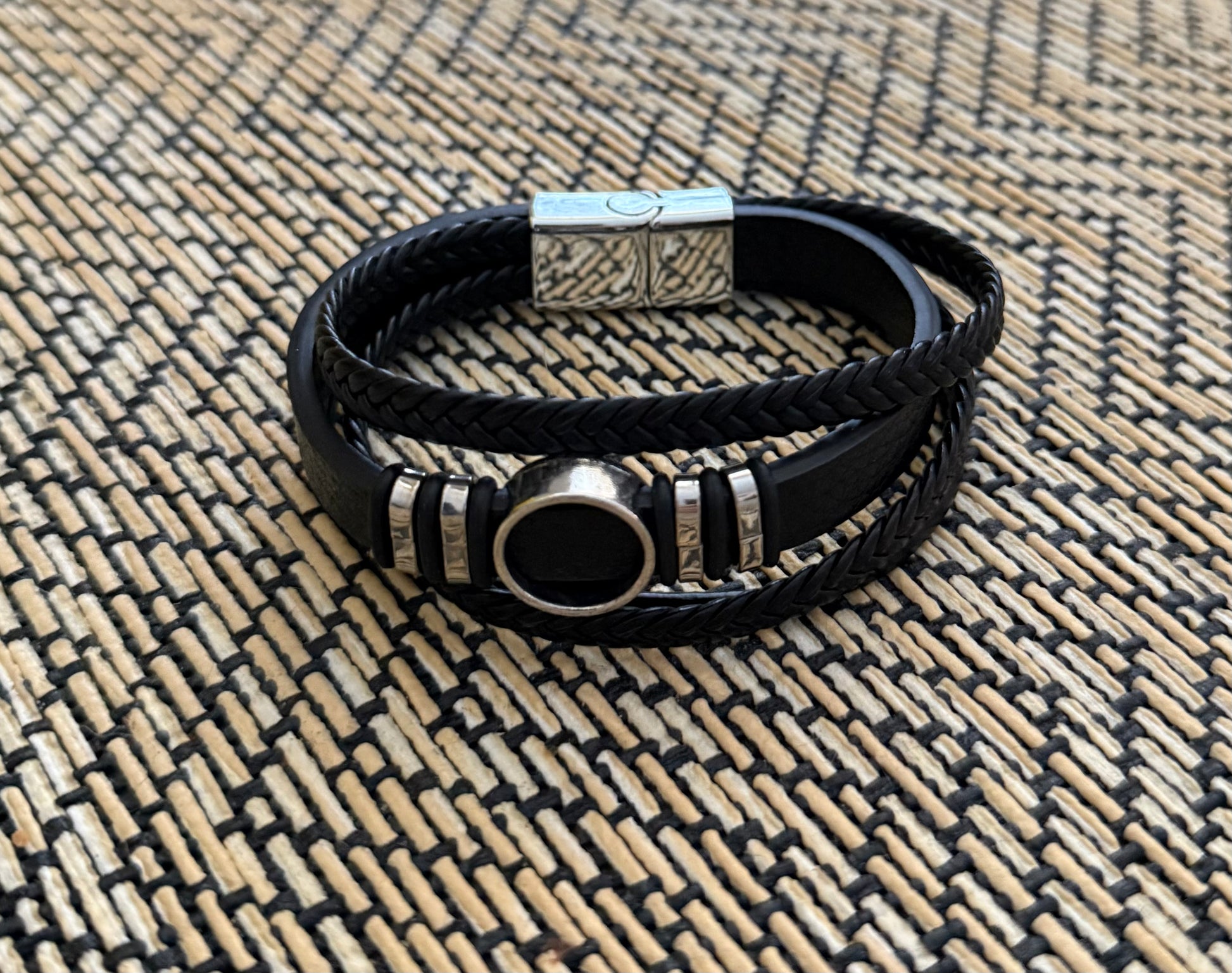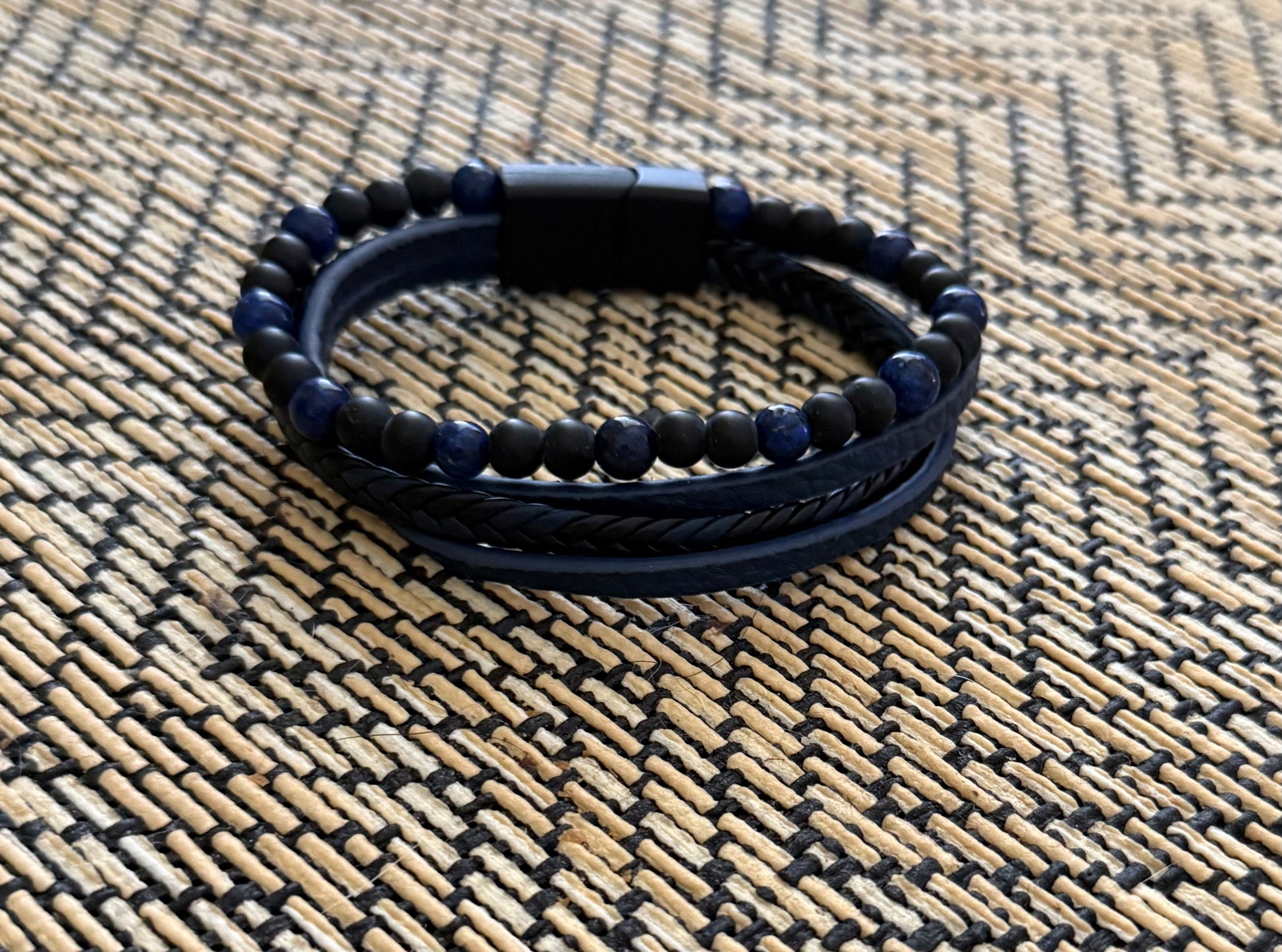 8” bracelets with variations of genuine lava rock, UV volcanic flame stone, bloodstone (heliotrope), and glass cat eye stone.
