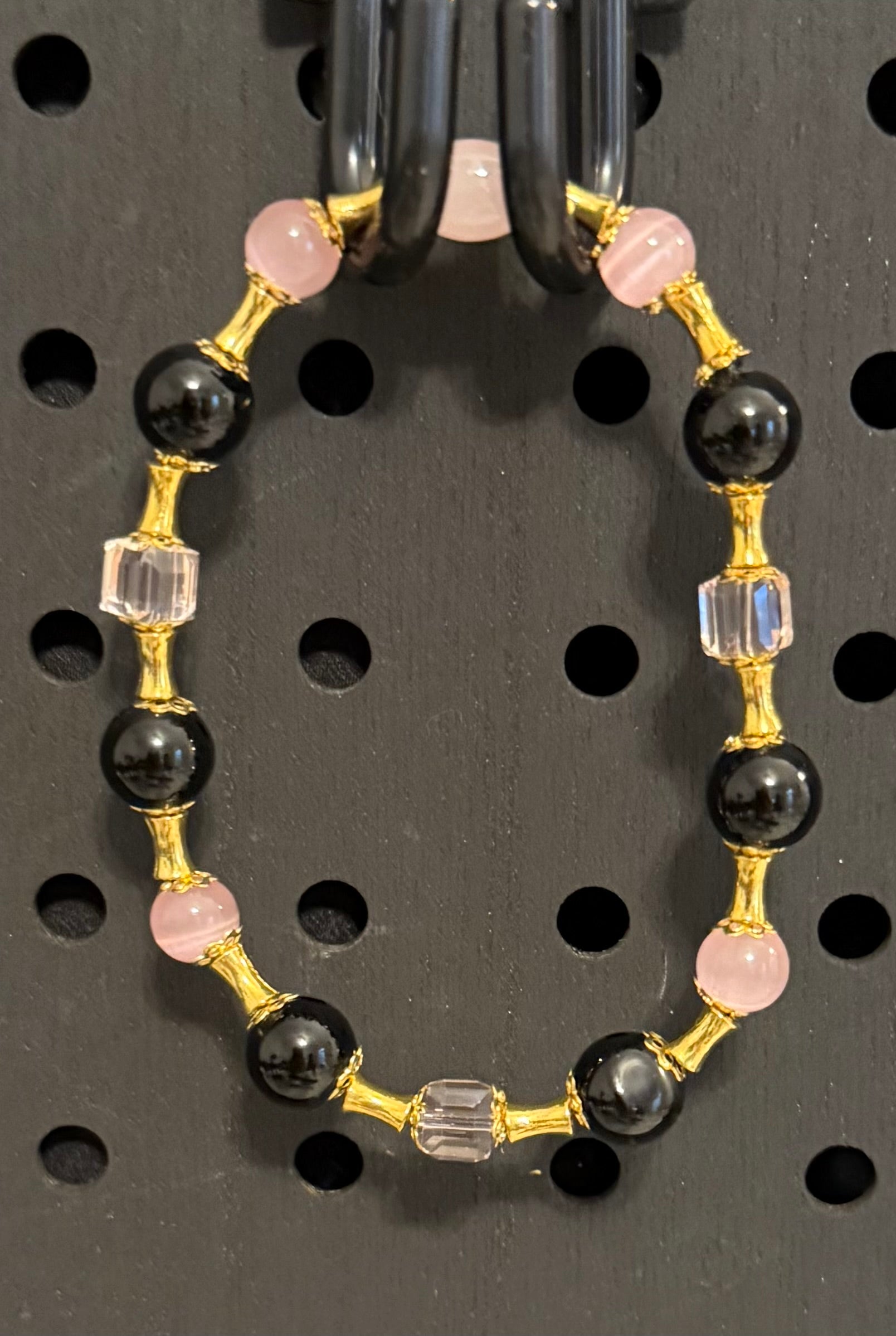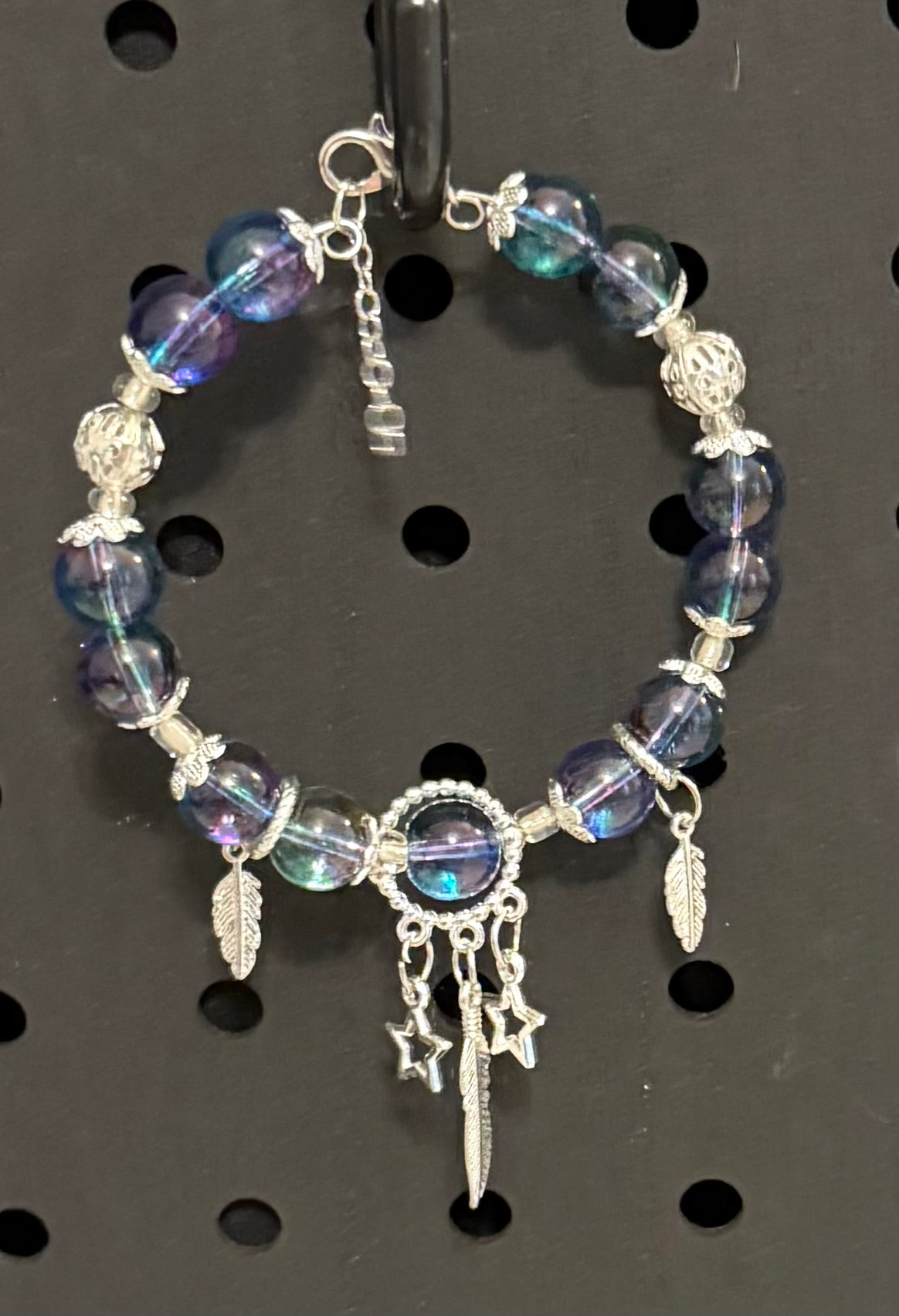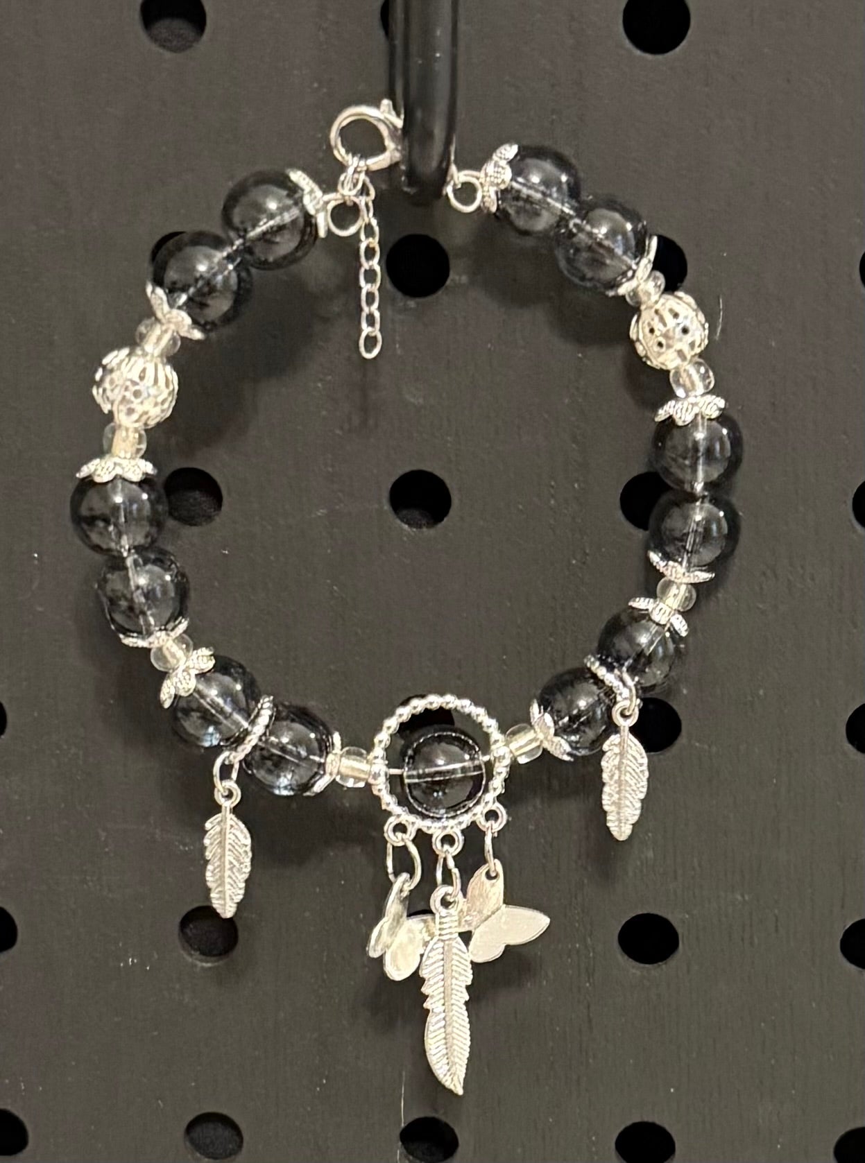 Delicate bracelets ranging in size from 7” to 8”. All bracelets are made with glass, crystal, or glass beads strung together with a flexible and sturdy wire.