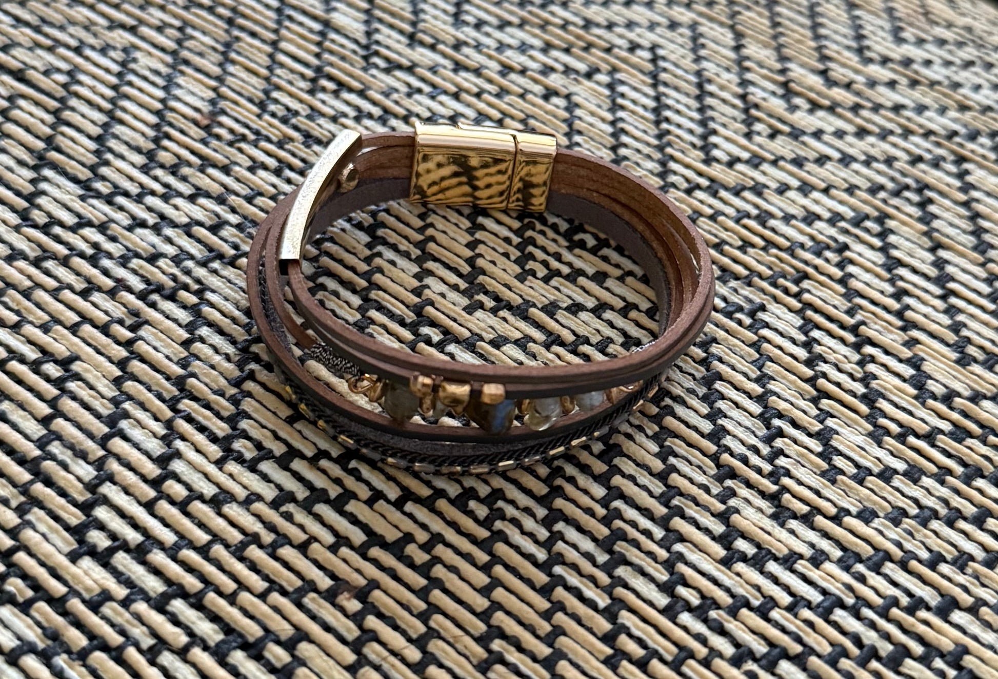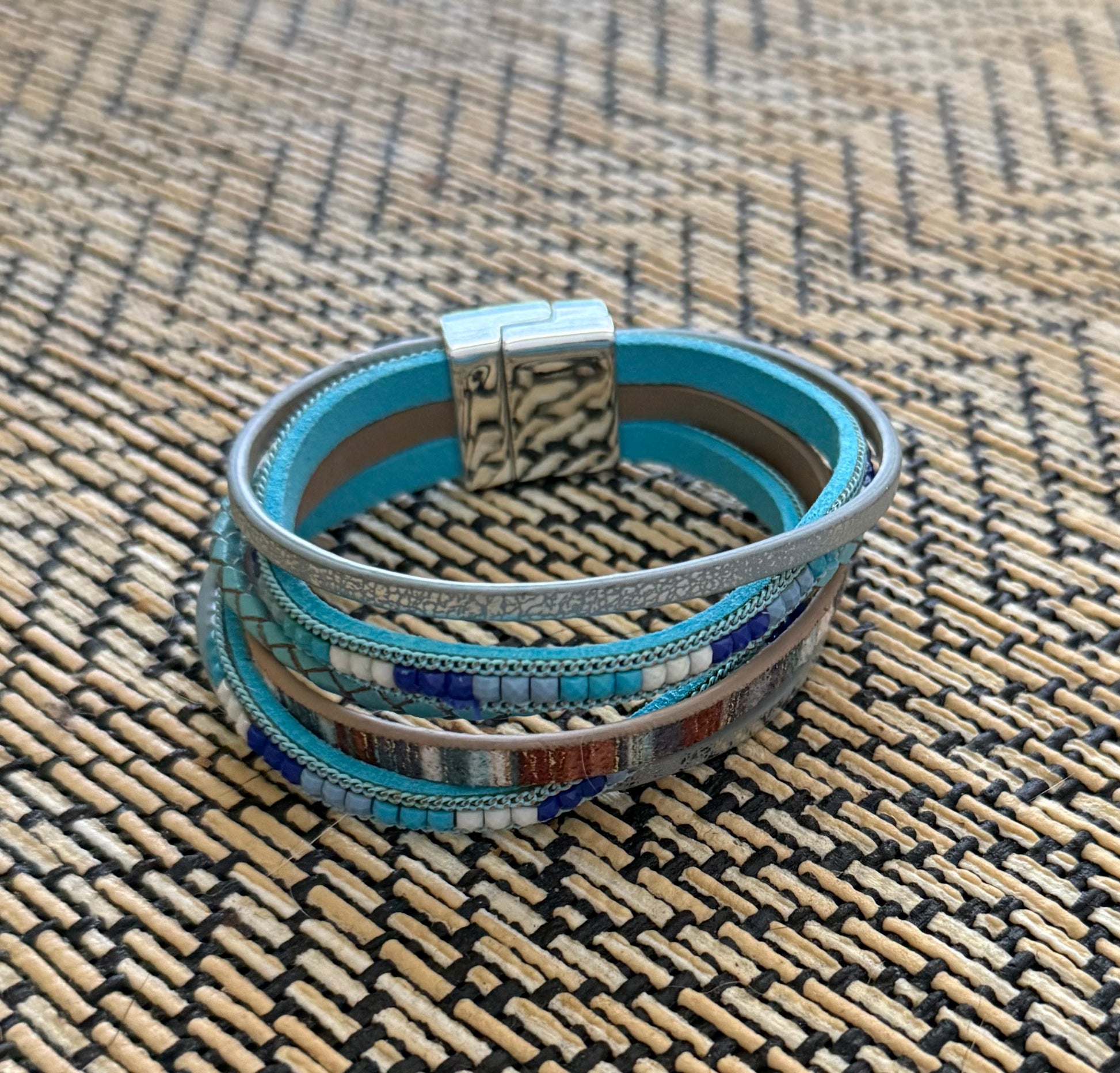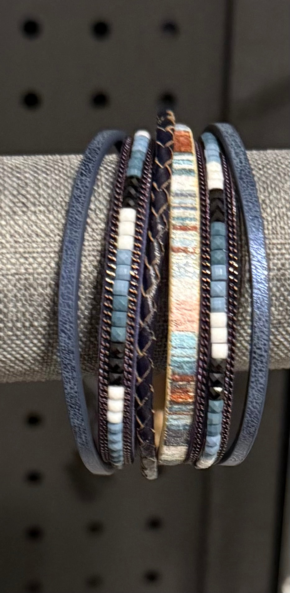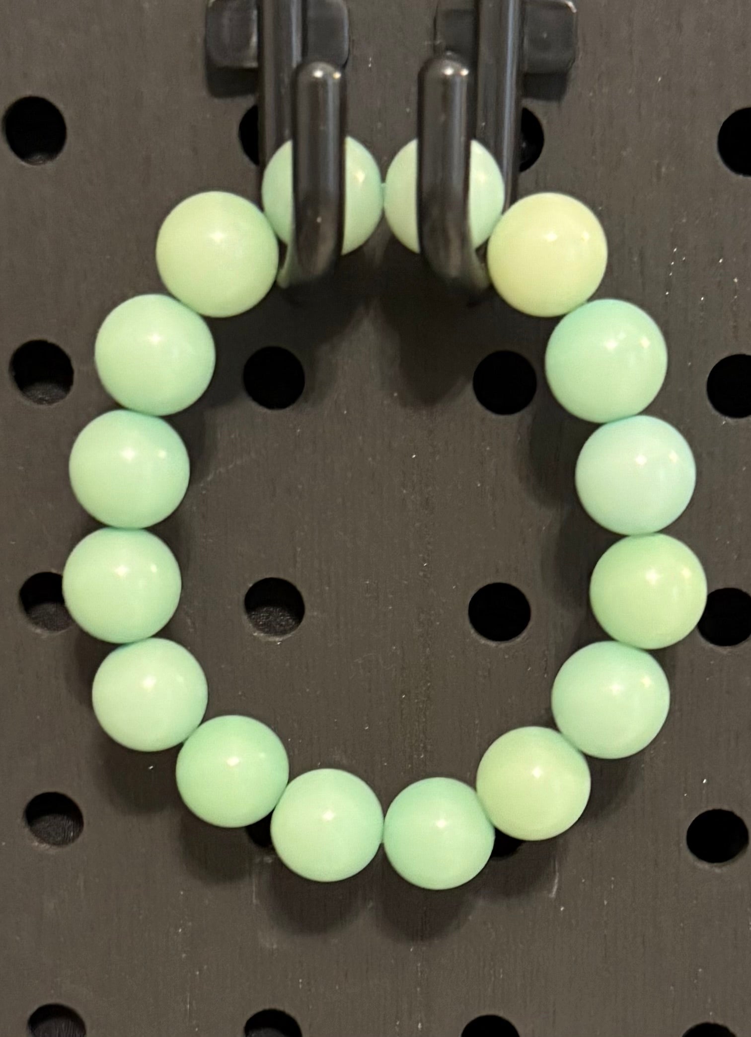 Delicate bracelets ranging in size from 7” to 8”. All bracelets are made with glass, crystal, or glass beads strung together with a flexible and sturdy wire.